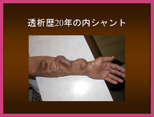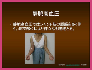 また内シャントの血流過剰は、写真に示すようなシャント肢の著名な腫脹を伴うことがあります。